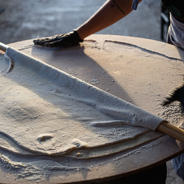 Soparnik is baked on an open fire in such a way that the place for baking is heated and Soparnik is sprinkled with ashes.